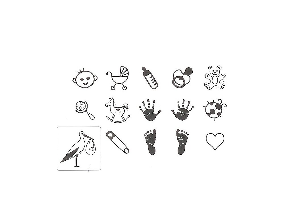 Sada dekorativních razítek s motivem narození miminka - 15ks.