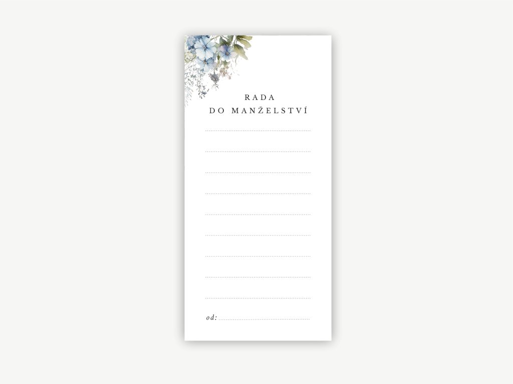 Produkt „Rada do manželství“ od ZuzaDesign je elegantní a hravý doplněk pro každou svatbu. Tyto kartičky umožňují hostům sdílet své rady, přání nebo vtipné postřehy pro novomanžele, čímž přispívají k nezapomenutelné atmosféře svatebního dne.