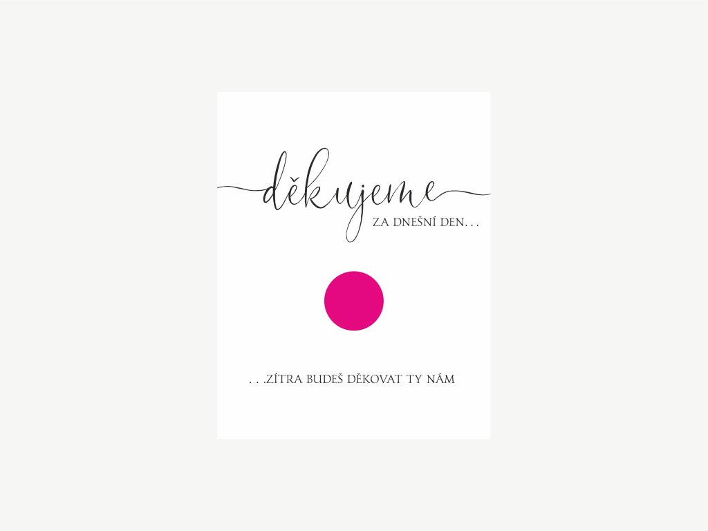 Kartička je navržena tak, aby byla nejen funkční, ale také designově sladěná se svatebními oznámeními a dalšími svatebními tiskovinami. Díky tomu zapadne do celkového stylu svatby a nepůsobí rušivě ani jako „vtipná vsuvka“, ale jako elegantní detail.
