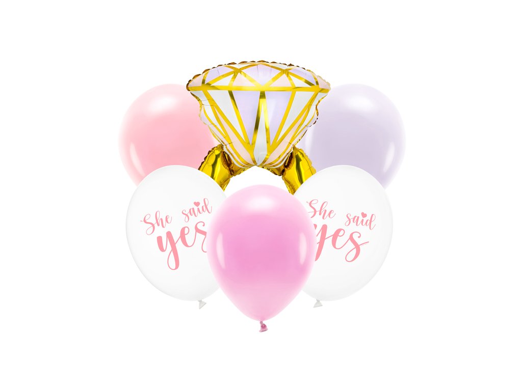 Balónková výzdoba, která zaujme na první pohled! Tato sada obsahuje 6 balónků ve sladěné růžovo-zlaté kombinaci – včetně jednoho výrazného balónku ve tvaru zásnubního prstýnku. Perfektní doplněk pro oslavy jako je rozlučka se svobodou, zásnuby nebo svatební brunch.