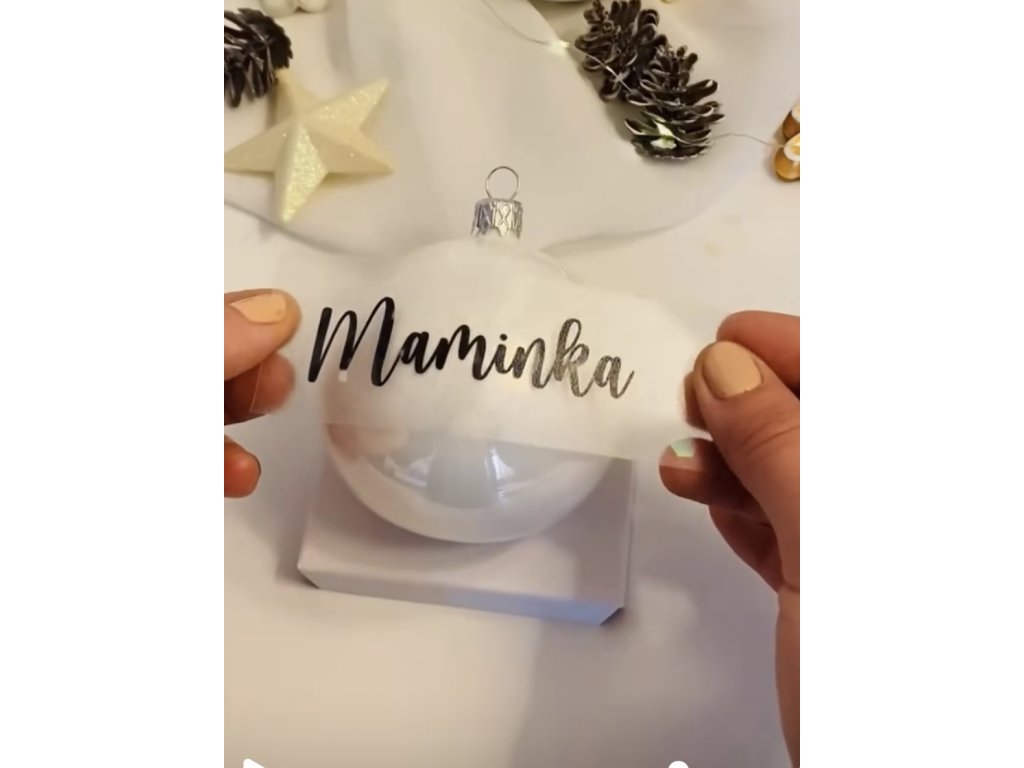 Samolepku se jménem Vám dodáme s přenosovou folií a snadno ji tak nalepíte rovnou na Vaši vánoční ozdobu.