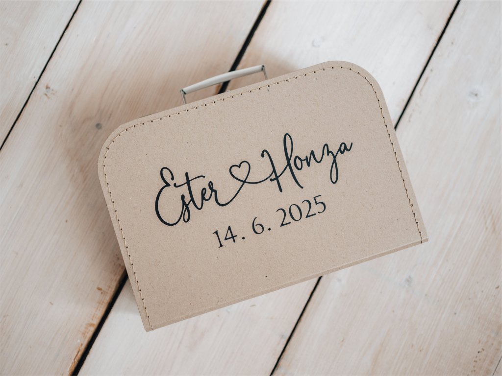Darujte originální svatební dar - Personalizovaný svatební kufřík se jmény. Využijte jej jako originální dárkové balení a naplňte krásnými dárky pro novomanžele.