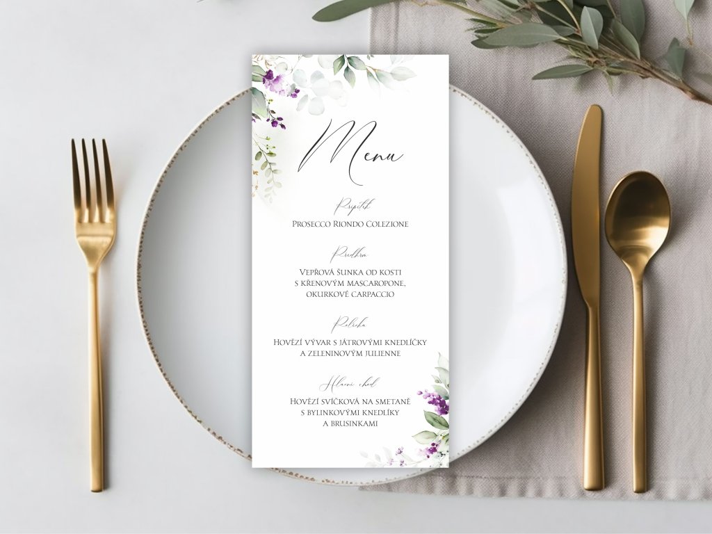 Svatební menu je důležitým detailem, který hosté drží v rukou během celého večera. Naše menu v jednotném designu s oznámením a dalšími doplňky podtrhne eleganci vaší svatby a vytvoří nezapomenutelný zážitek.